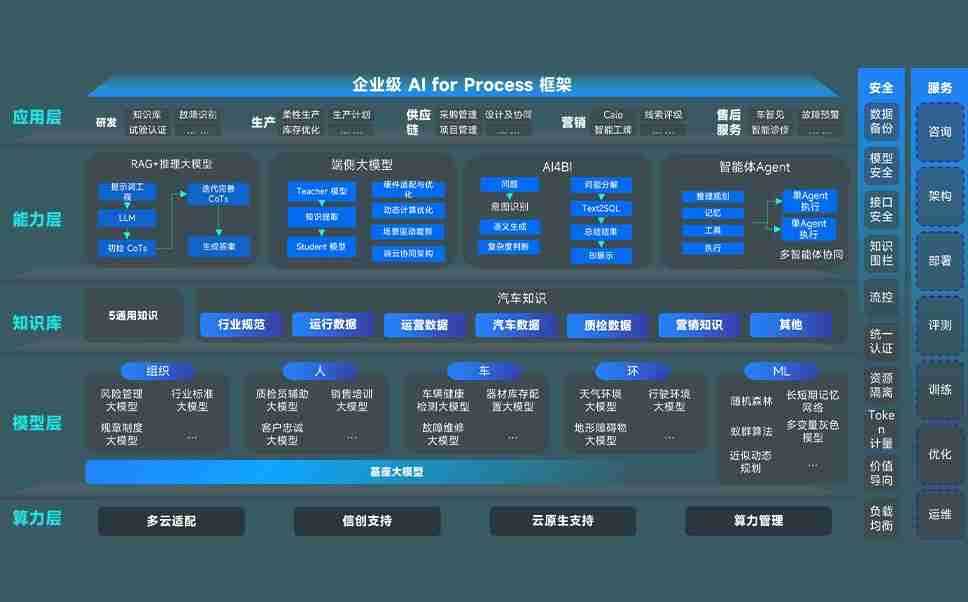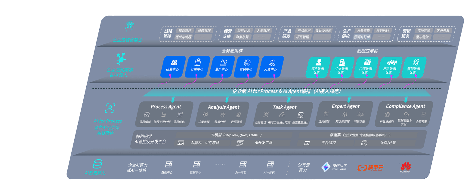 新航娱乐问学智车解决方案是一套基于AI技术的汽车行业智能化系统,,,,覆盖从底层算力到顶层AI应用的全栈方案。。方案由算力层、、模型层和应用层组成:算力层,,,方案支持多种一体机配置,,,具备云端灵活部署、、、多云适配以及动态优化计算资源的能力;模型层,,,新航娱乐问学平台版提供了企业级AI应用一站式构建与管理平台,,,支持基于后训练强化技术的汽车企业专属模型的训练、、、评测和运营;应用层,,,,新航娱乐问学DeepSeek版提供包括超级员工、、、、智能招采、、、、智能营销、、、、智能客服、、、AI for BI等一系列解决方案,,,,可助力汽车行业实现数字化转型,,,,让管理更智能、、、响应更敏捷。。。。